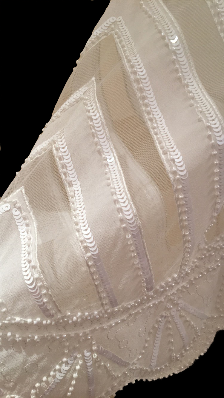 فستان للمناسبات والحفلات - متوسط الطول - فتحة الرقبة مستديرة - أكمام طويل مزينة بالخرز - كسرات من الأمام والخلف - أغلاق بسحاب خلفي - طبقة فستان تحتية بنفس اللون