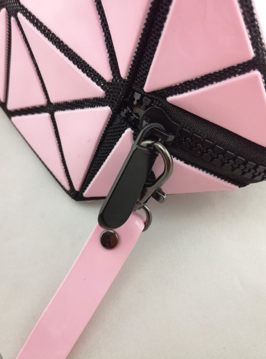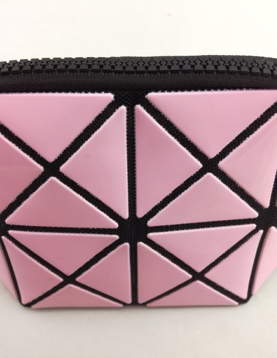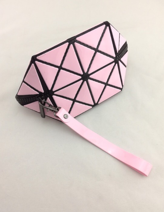 حقيبة التجميل اللون ( الوردي) . مبطنة بقماش من الداخل , بسحاب خارجي مصممة بقماش لامع و جذاب بنمط هندسي مميز ورائع . (متوفرة باللون)